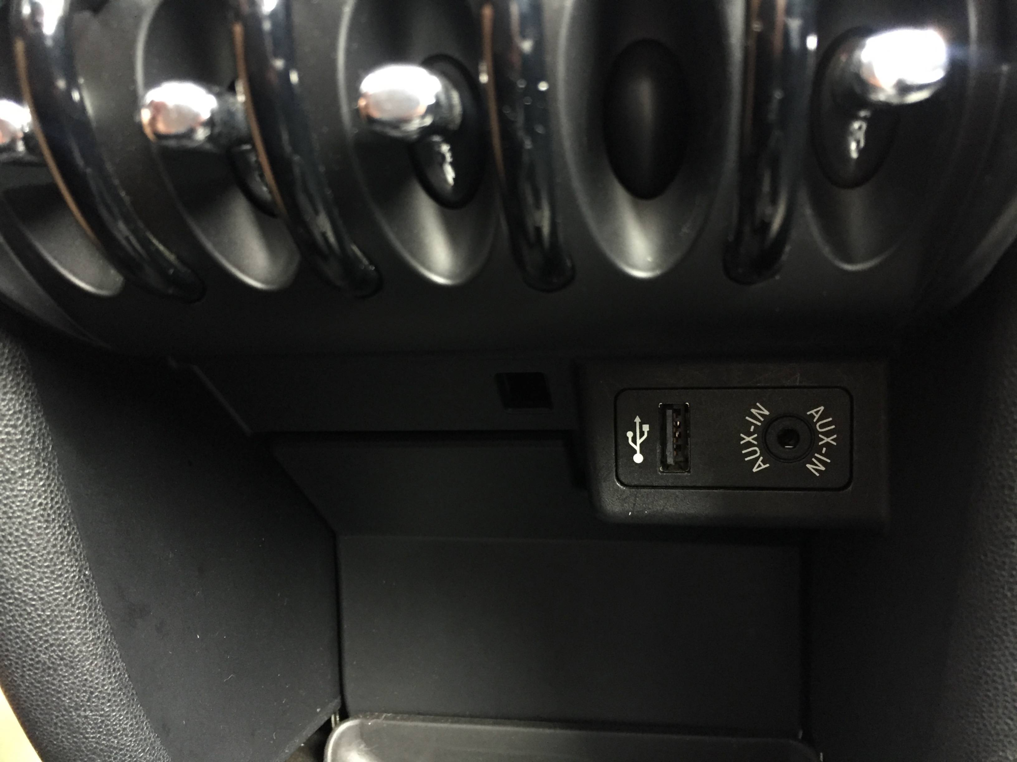 I bought a 2012 S Clubman this afternoon, and I have been exploring its features. I plan to plug in a Tune2Air device, to stream my iphone to the car radio, but I cannot find the USB plug. I found the MP3 input, but no USB. The owner's manual says it is just to the left of the MP3 input, but I cannot see it. An ambient light is about an inch and a half to the left of the MP3 input.