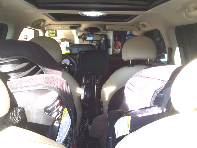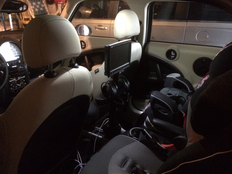 It was this weekend, but I made a removable monitor with wireless headphones setup for the backseat of the Countryman w/ the rail. Now I need to adapt it for the non rail Countryman.