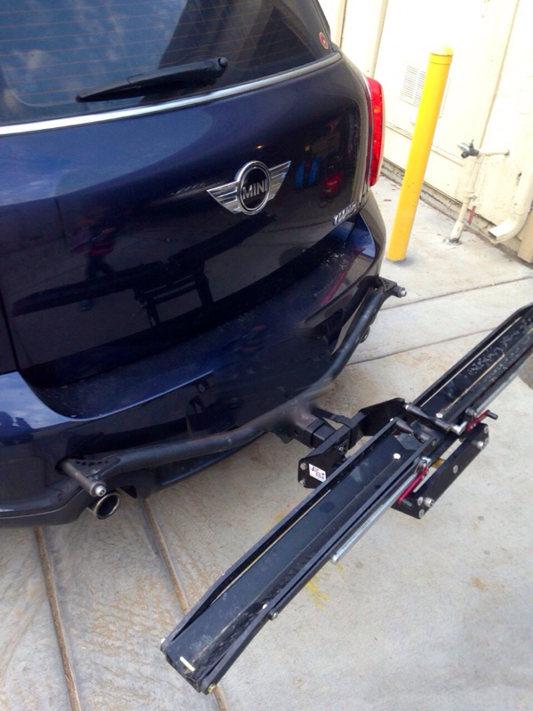 Attachment 97110 Run a 1Up rack with the Cooper Crap 2" hitch mount. Love it. Have the Mini OE roof rack, but prefer this instead. Cleaner, no wind noise, etc.