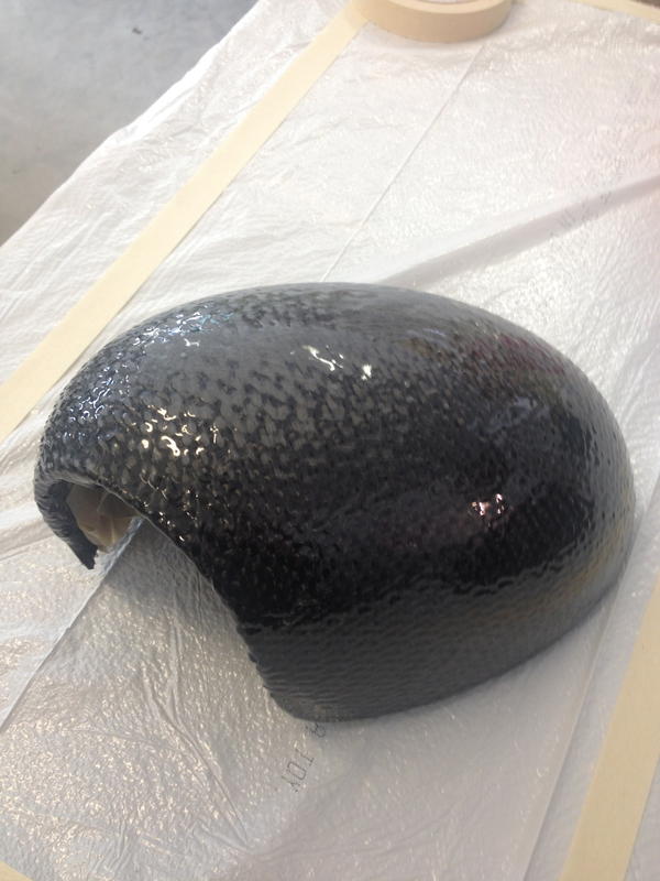 One major thing to consider in choosing your first piece to try is what kind of edge do you want? With the mirror caps i knew i needed a clean, trim finished edge and that was another difficulty. Actually they would mot even go back on until i dremmeled the crap out of the edges then sanded it back down. So if you have a tight junction then you need to lay the cf perfect to get a thin edge of resin on top of it.