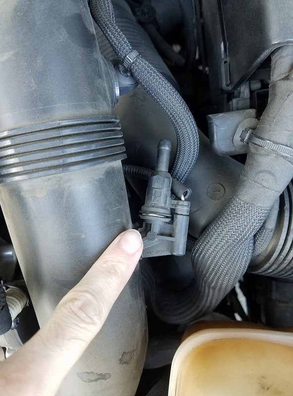 First is what looks to maybe be a vacuum hose coming off of the sensor on one of the hoses coming off of the airbox. I have two questions regarding this. What is the sensor called, and where does the other end of the line go?
