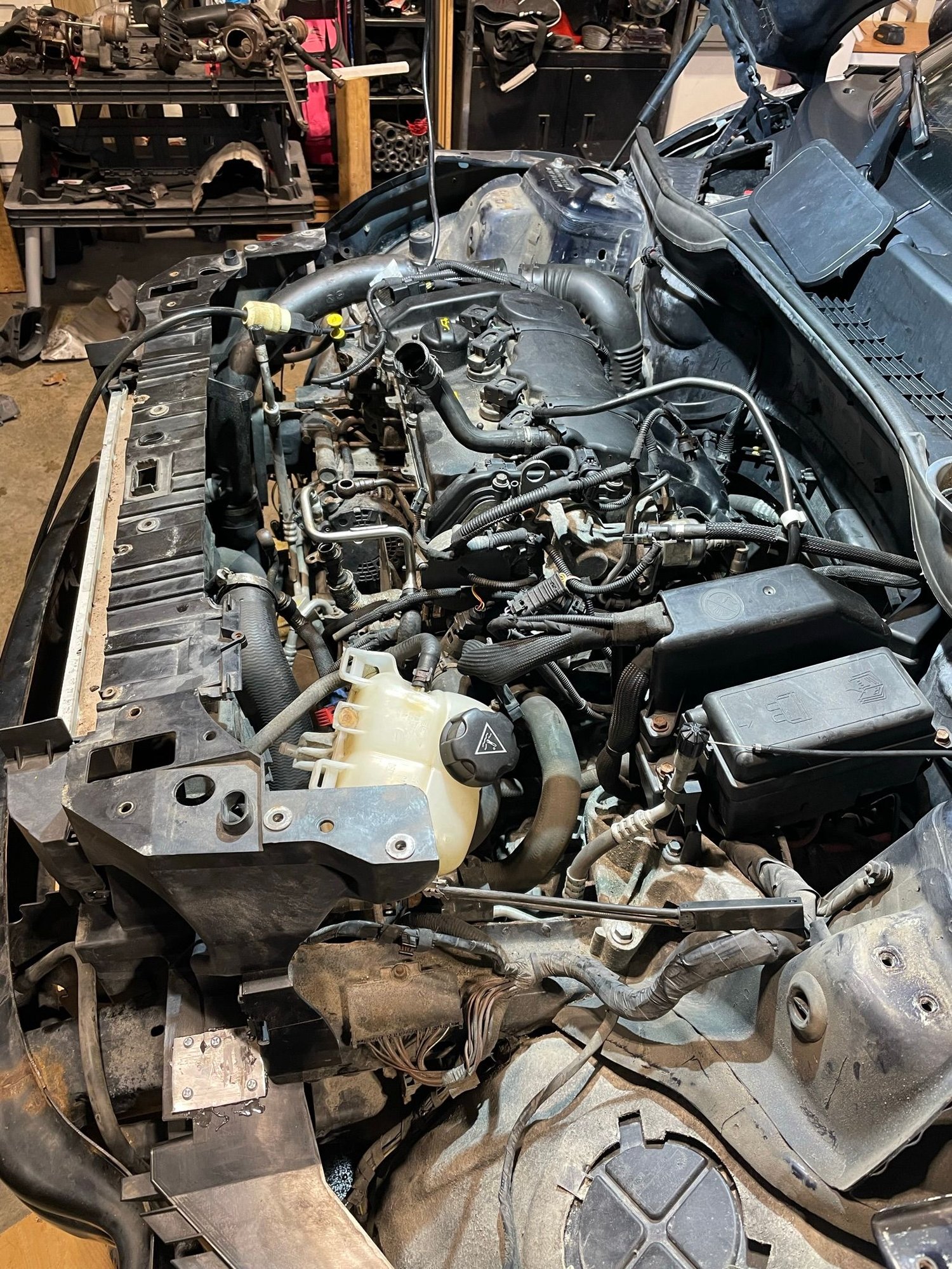 I took the number cover off, the two bolts and one Torx from each side of the actual bumper. I have yet to take out the four bolts from the underside that seem to allow the front end forward. I was trying to follow ModMini front end service mode (r56) as a guide, but I’m not seeing anything close to it on the countryman.