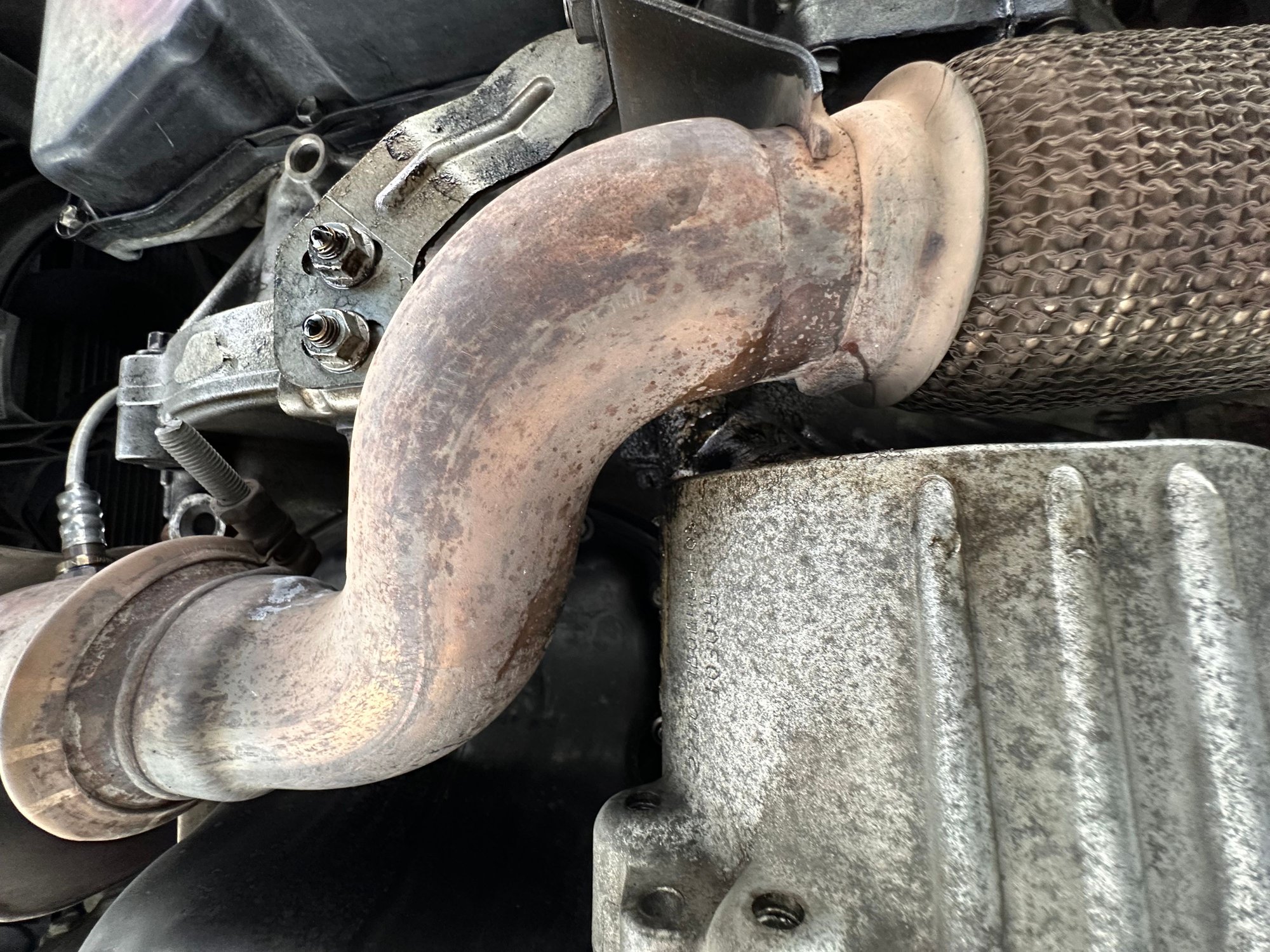 EDIT: Are some of these taken with a selfie camera such that the images are mirrored, or am I getting spacially disoriented? I still think oil cooler is good idea to check. If a manual trans, could be trans gear oil, looks too thin though?