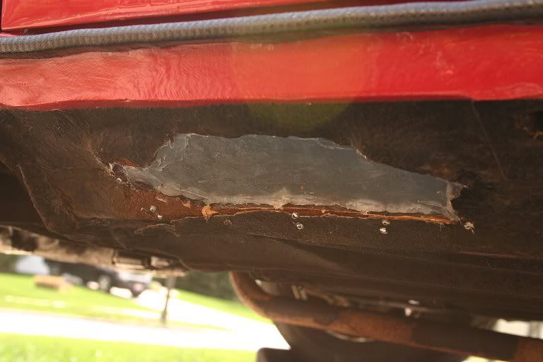 But it'll probably rust out again in a few years and I'll just swap the whole pan then. Until then, all I wanted to do was keep water from coming in. The repair is under the car and concealed by carpeting as it is...