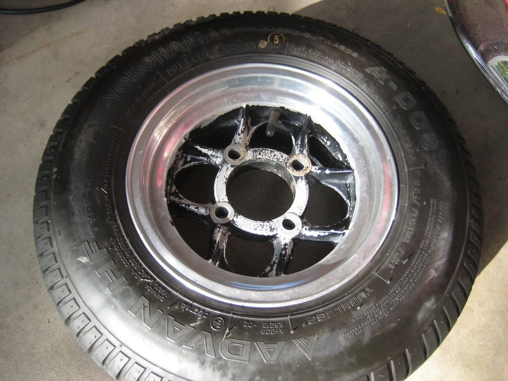 Started stripping the wheels to repaint them gloss black and polish the lips