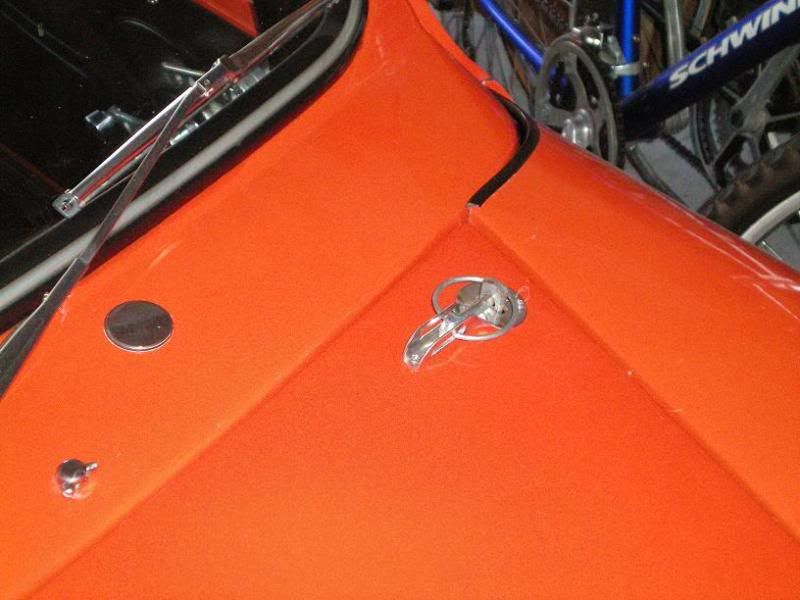 You'll also see that you have different options up to a point with a MK1 vs later years because of the grill lip on the bonnet. Here's how mine is held down - the entire front clip is glass so there are no hinges - my straps and clips are functional and necessary... and the type of strap/clip plays in too of course.