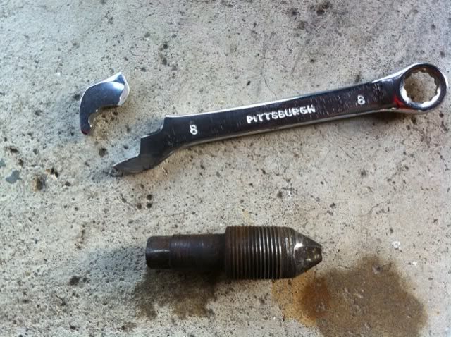 Got one side done, but the other side's brake adjuster was completely frozen into the backing plate. How frozen you say? Well, even after heating and multiple rounds of penetrating oil, here's what it did to my wrench