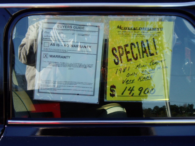 I would be scetchy about this Mini and the sellers integrity because this is not a 1981 (if it is a real British Open). I guarantee that he has no proof that it has 30k original miles unless the 1981 which the VIN tag came off of had 30k original miles and paperwork to prove it. This would be a different car that had 30k original miles... not this one. It could be a repainted British Open but then it is not a 1981. I think that the price is very high in my opinion but I get all of my Minis from Europe so the prices are much different.
