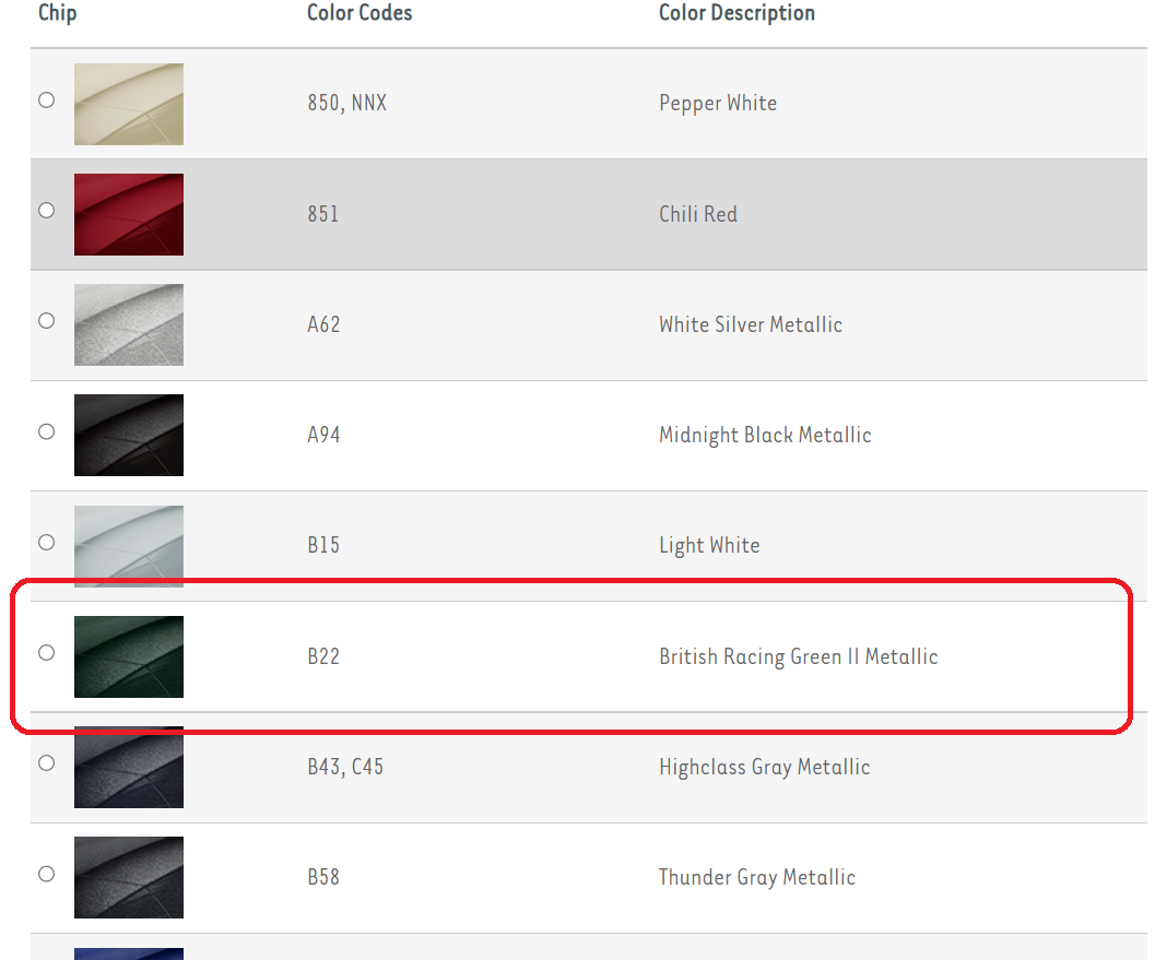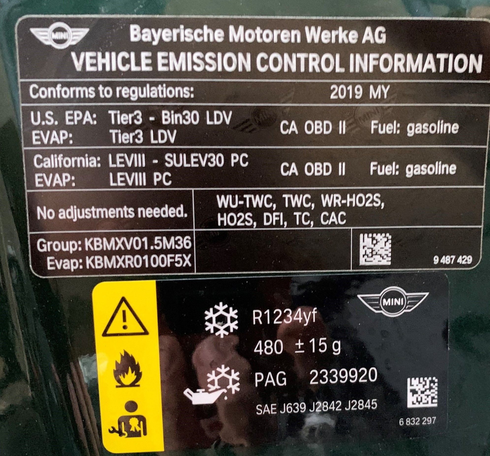 I own a 2019 Mini base 3cyl 1.5L. My Mini is racing green with two white stripes on the hood.