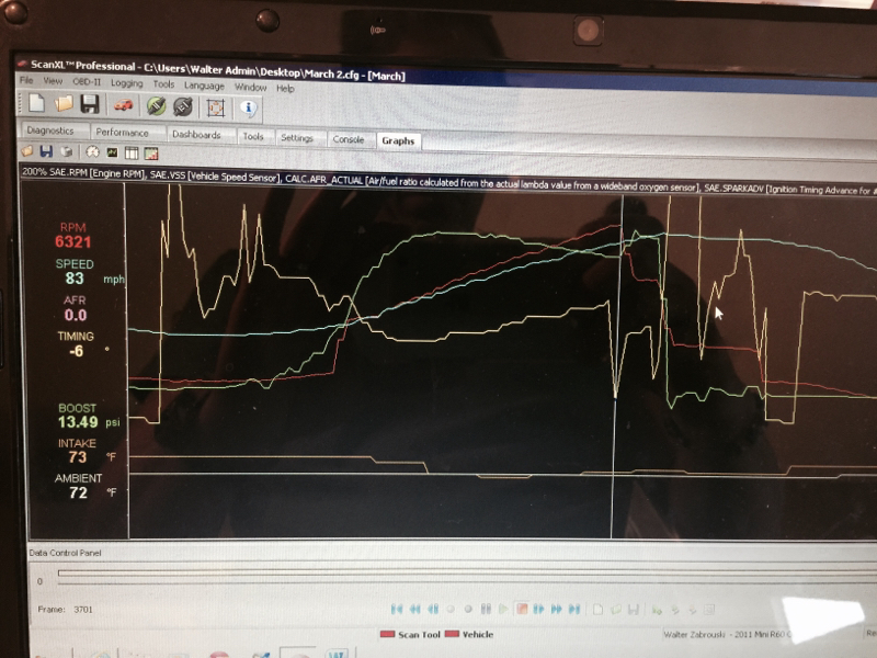 I have been hunting down a CEL code for about 6-8 months now. It is a P2C57 which is common when there is a boost leak on the air charge side. Or when the ECU is calling for more boost but it is not available. I charged the system to 20psi with no leak. I was finally able to data log a variety of different runs and in doing a 60-90 run the CEL occurred which is helpful. Below is a graph at the point I believe the CEL triggered. Manic Motorsport brings us N18 owners OBD II Tuning! Solution is finally here!-image-815609317.jpg The data log is off to Manic. Ran on stock for 1000 miles with no issues.