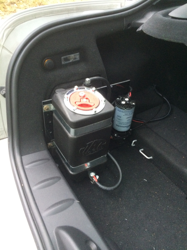 I also installed my new 1 gal meth tank about 2 weeks ago. It's a jazz fuel cell with a vent tube leading outside the car. With my old snow performance meth tank with vented cap, I would get a meth smell in the car. Now no more smell and larger capacity.