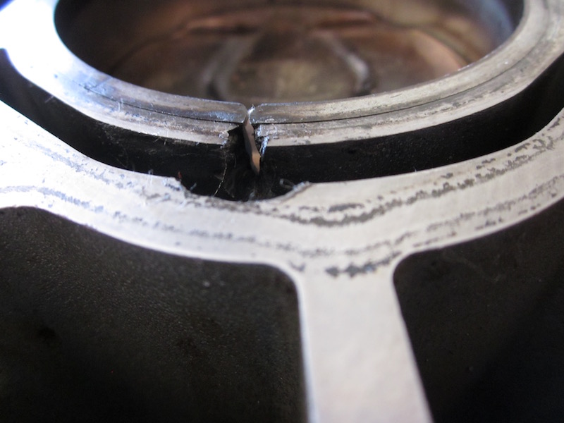 Again I'm just going off of the pictures but based on my experience in fault analysis and even some accident investigation in aviation it appears as if a stress fracture of the cylinder wall is what lead to the failure. Cylinder pressures are by far the highest in the top 1/2" of the cylinder and drop exponentially the further down you go. The cylinder walls are subject to cyclic stress from the pressures generated during ignition and thermal cycling. Sometimes when I think about it that way it amazes me that engines stay together at all. It looks as if the stress fracture allowed the super heated gas to pass around the compression ring and began damaging the side of the piston. At the same time once the super heated gases began passing through the crack the sharp raised edges from the grain of the cylinder wall acted as heat risers focusing the heat, opening it further and it eventually just blow torched it's way though.