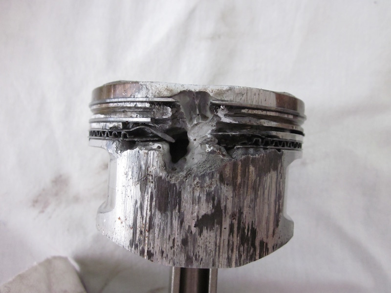Then #2 piston. There was also aluminum “residue” on top of rod #2 —- apparently from the blown-out piston. Didn’t get a pic before I cleaned up most of it. Wrist pin and rod bushing also took a hit.