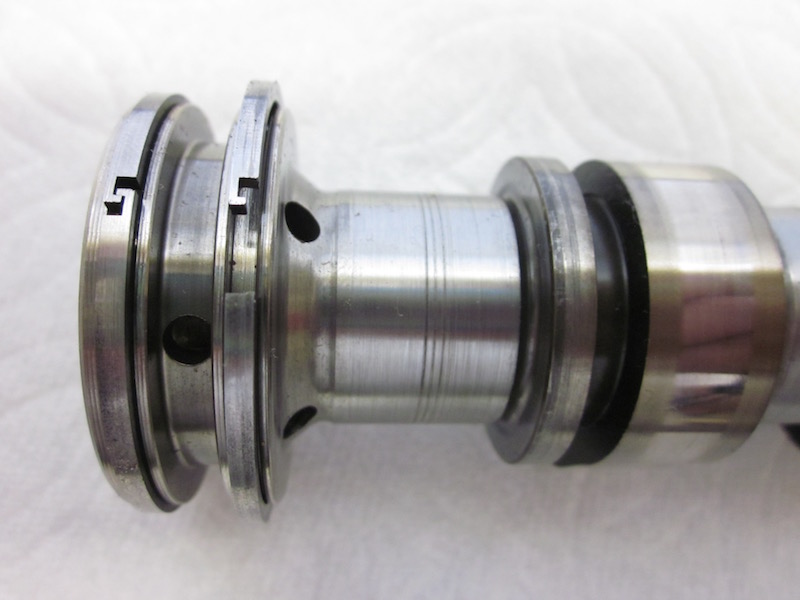 Pic doesn’t show it clearly, but all 5 of the intake cam journals, cam, and caps are scored. Plus the cam has one of the two interlocking rings broken —- the rings that fit inside the vanos unit. The ring might be replaceable but the journals need to be machined. If machined, they wouldn’t fit the head without building up the 5 journals, then line-boring it to accept the machined cam. Not practical! No damage to the exhaust cam or its journals.