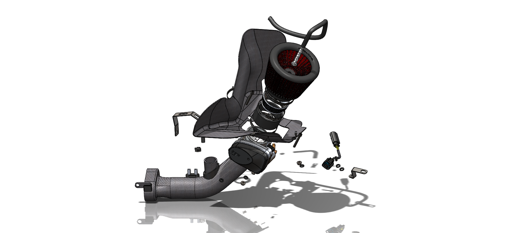 The way I designed the charge pipe is so that achieves the best flow characteristics, meaning smooth transitional airflow, tapered designed and increased volume. In order to achieve these a relocation of the throttle body is needed. Then in order to fit a high flow air filter that meets the average flow characteristics of a car with 16% pulley a billet adapter was designed firstly to eliminate any step between filter and throttle body and secondly to accommodate the enlarge diameter. A proper designed intake should be separated from any heat source in order to keep intake temperatures low thus having a more dense air going towards your sc inlet. That's why a heat shield is needed.