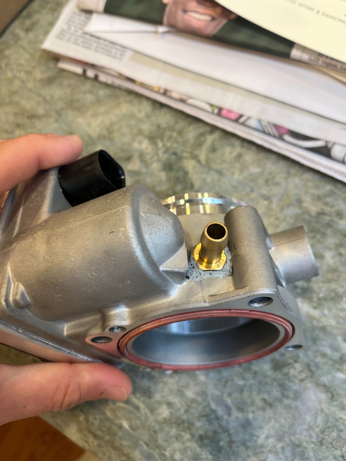 I definitely did not use the most appropriate fitting and ending up making the hole a tad too big. Ended up using a bit of plumbers putty to make sure it was sealed. I don’t think the nicks I made with the drill are causing any air to pass by but perhaps they’re affecting the flow. I still can’t imagine that being the cause of a vacuum leak code and the EML light coming on though.