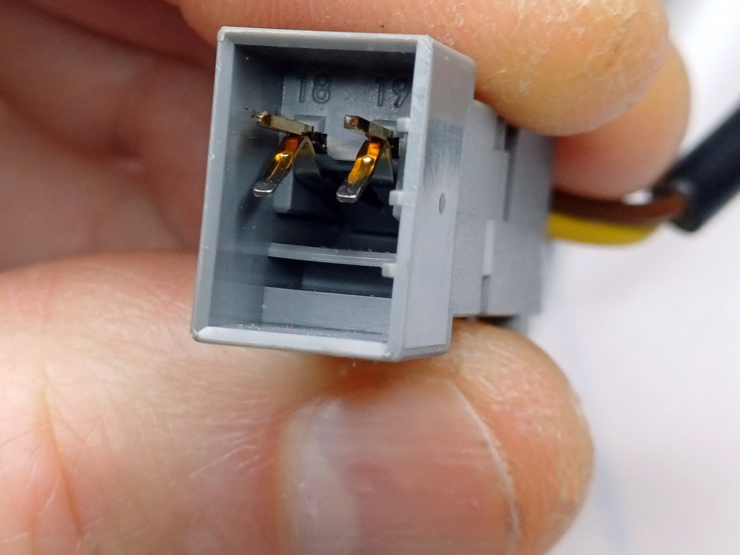 Of the three connectors that are all located in the same connector housing, two connectors have these springs. The third and largest connector does not have springs. These are connectors under the passenger seat that have the connectors for