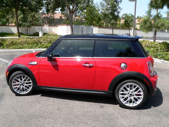 Here some new pictures of my JCW. Now with vinyl in carbon fibre look on hood, a-panels, roof, rear spoiler and rear diffusor. The mirror caps and air intake are chili red