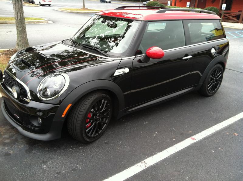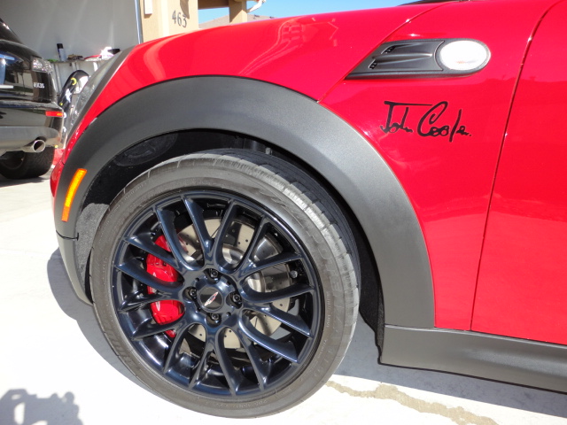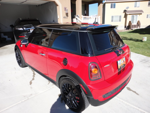 Purchased 2009 fJCW in July this year. 1st year to come out of the factory. Note no aerokit on the rocker (side panels). My finishing touches were: put an opposing red viper stripe on the roof (no sunroof), John Cooper Signature graphic on front fender. Blacked out belt line, headlight rings and taillight rings, side scuttles.