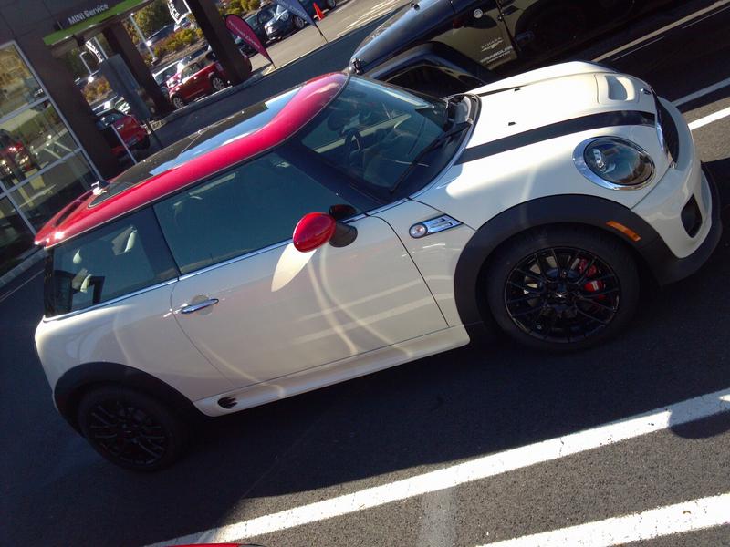thanks guys. i really wanted a red jcw, but couldnt make a deal with the dealer. pepper white was my 2nd choice. i also have never been a fan of all black wheels, but on the mini it's a must imo, it flows well with the roof, mirrors and wheel arches.