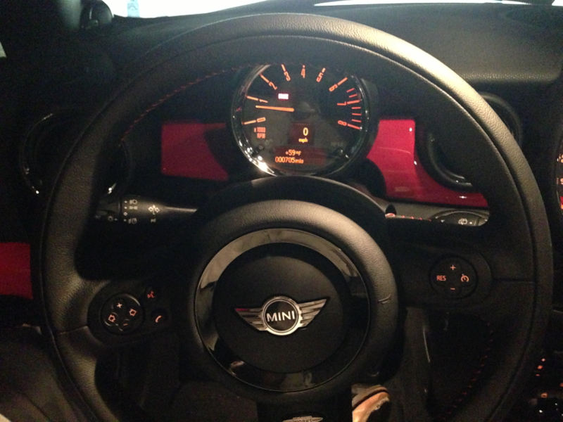 Thanks! Yeah I wasn't sure about the chrome interior trim when I was reading the description of the car but after I saw it I liked it. I was looking at another JCW which was local. It was PW also with MINI Connect/Nav, moonroof and Recaro seats. I decided to drive 4.5 hrs to get mine since I cared more about the other little things like anti-theft alarm, auto dim heated powerfold mirrors, comfort access, PDC, auto headlights and wipers plus the CR top and mirror caps.