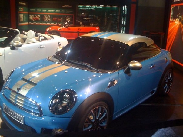 so you didn't miss much.... The Mini booth didn't have a classic Mini, didn't have a Mini-E... Had some JCW and standard product. And a Clubman with a "Woodie" vinyl wrap.