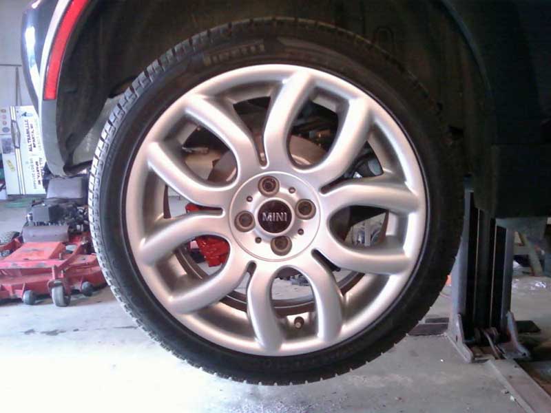 ok,so here is the pics of the rear calipers on my 06 jcw I painted.Sorry I used all the paint and tossed the can.I will stop at the store and get the info they have plenty on the shelf.Also custom made my own strut tower plates from stainless.I'll try to get a pic of that to.Oh the fun things you can make with a plasma cutter for the mini.