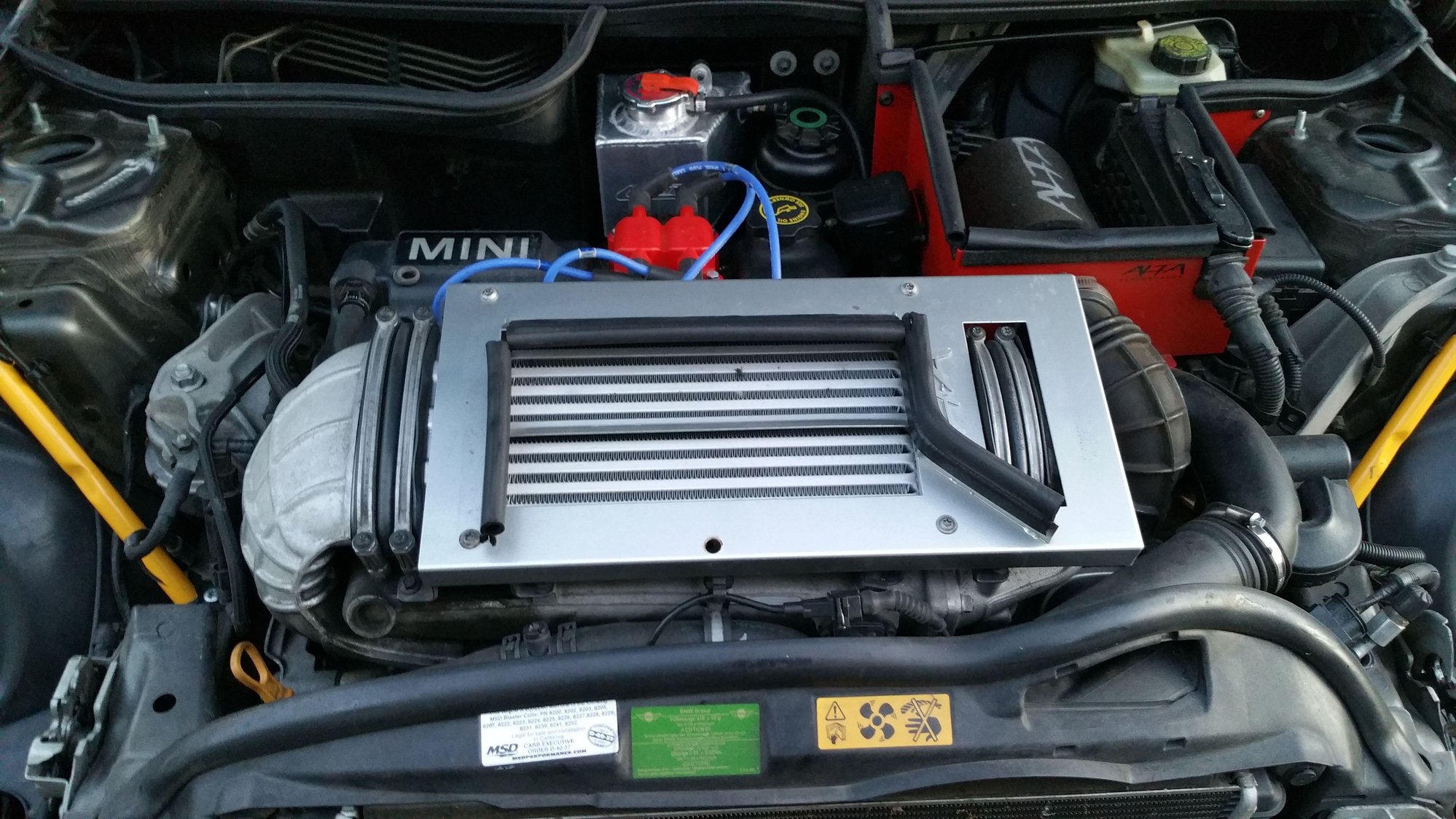 Bought a shagged out R53 a three months ago, needed lots of TLC. Three months later has new, not reman motor with warranty. Every part I've uprated from an LSD and short shifter, magniflow header, milltek exhaust system, flowed and ported supercharger, 15% reduction pully, Jesus head with 550 injectors, completely new evap system, canton water reservoir, m7 cai and strut bar, ohlins coilovers I could go on. She has been flashed and on the dyno puts out 253 at wheels.