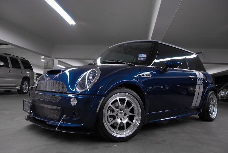 Ive got updated pics i have to load up. Since these pics, Ive installed the JCW-CF mirrors, blacked out the side vents and added a Blue "S" decals to match the blue calipers and tow hook. The car def gets alot of looks in town. Must be the wheels!