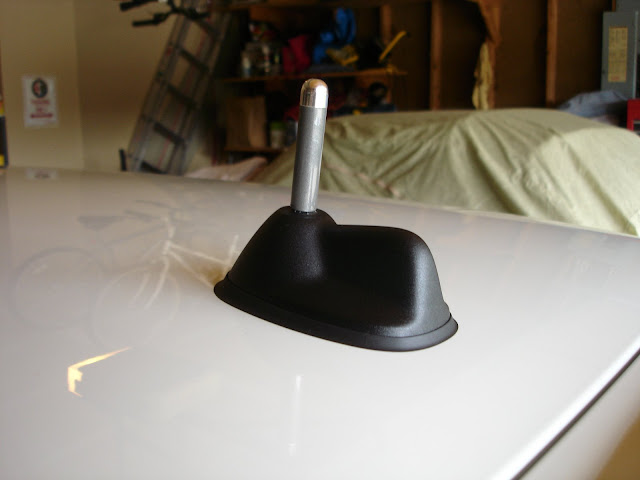 Here's a crummy picture from my camera phone...I can't find my camera (so what else is new)! The photo sucks but you can see how cool the antenna is. It's black with a polished tip.