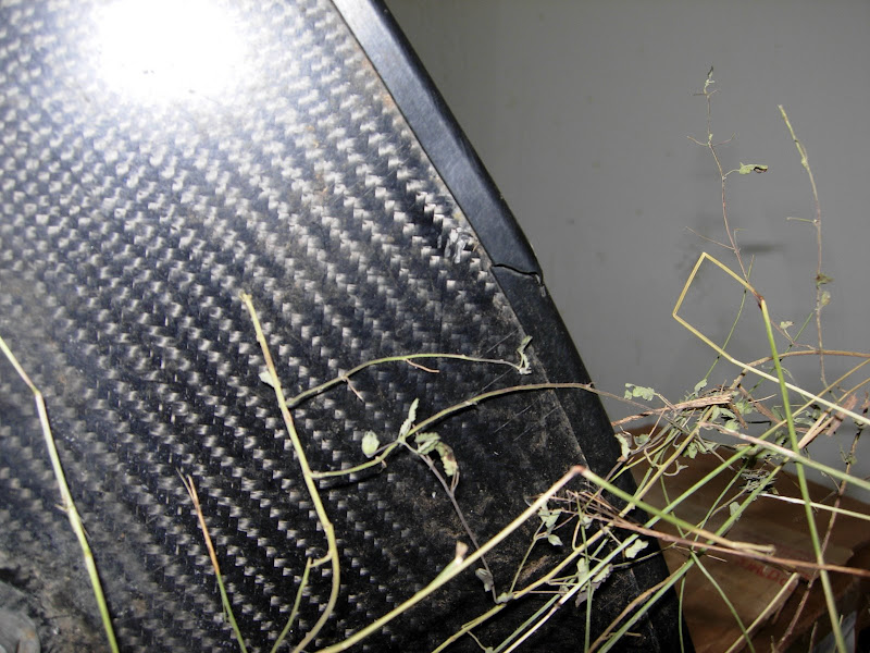From the way the piece was laying in the field and the topped fire ant hill it was easy to ascertain the left front dug into the ant hill ripping the bumper cover from left to right. Picture 3 shows the minimal damage at the point of impact. Note in Picture 4 the tire track at the bottom of the photo. The left front tire left a mark, I might be able to buff that out.