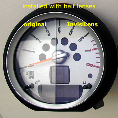If you could eliminate lens reflections 100%, you'd have a completely clear view of the gauge and the effect would be like the lens wasn't there. InvisiLens takes it most of the way, eliminating about 98% of light reflection.