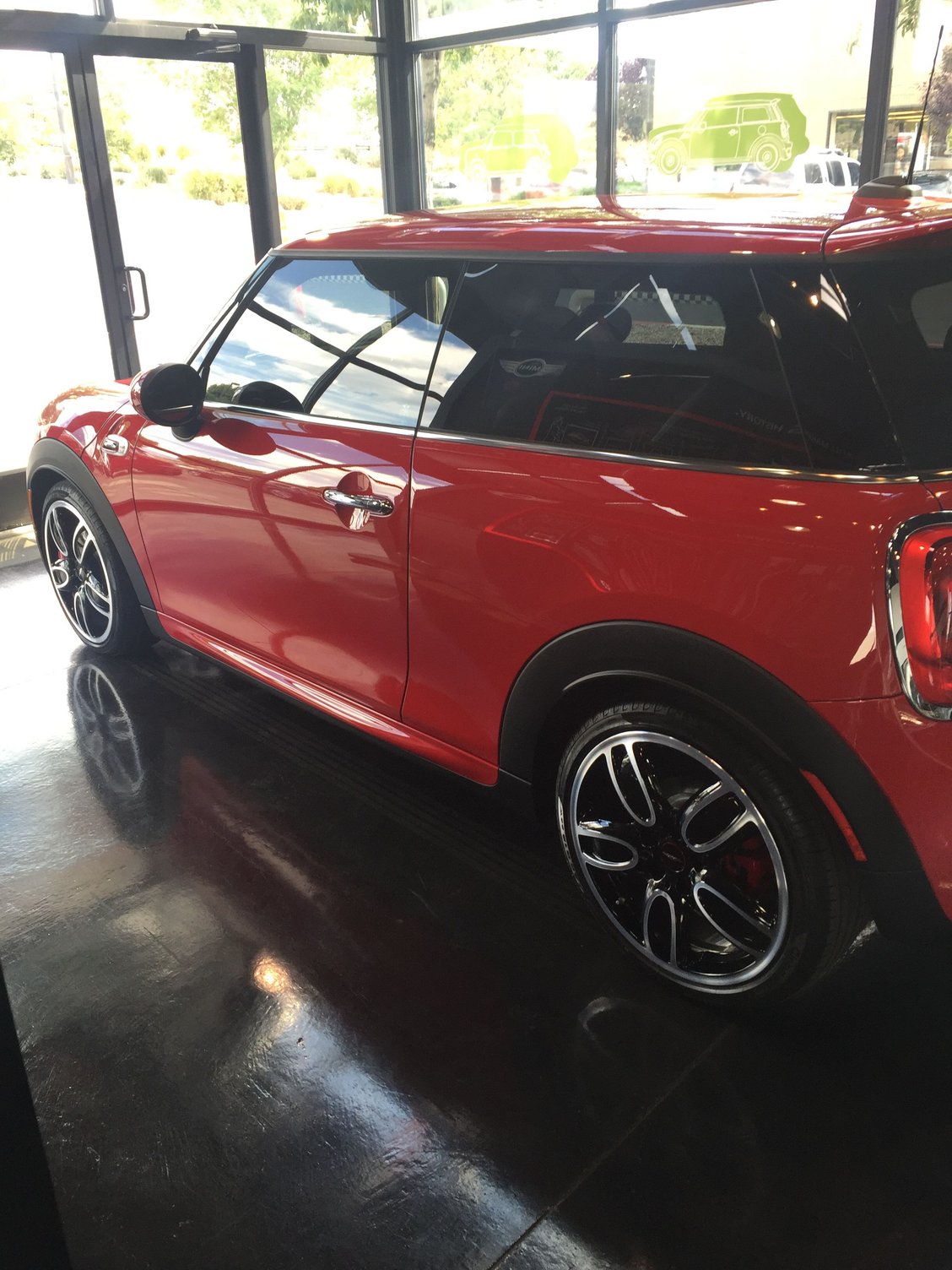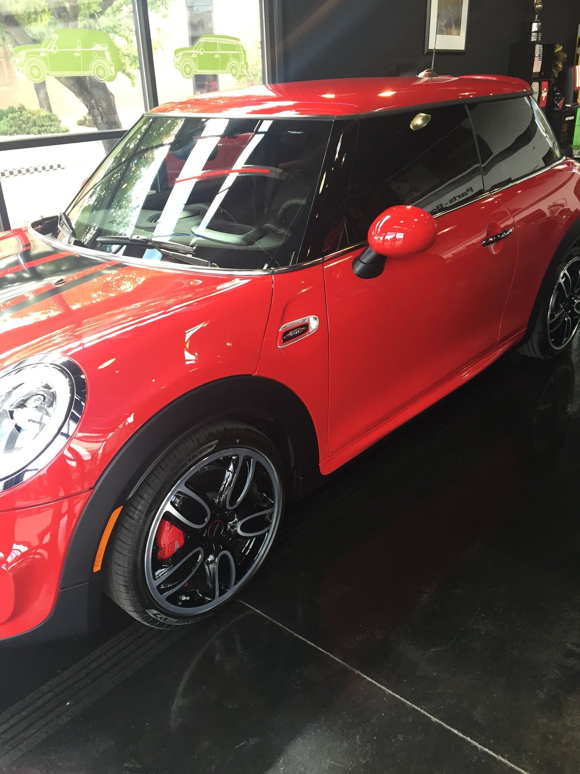 Just got the first picture of the car. Small mess up though, it's supposed to have a black top and mirrors.. Hope this is a quick fix. Also JCW concept stripes, 20% sunlight tint and driving lamps to be installed before I pick her up Saturday. Unless it takes longer on the fix for the top.