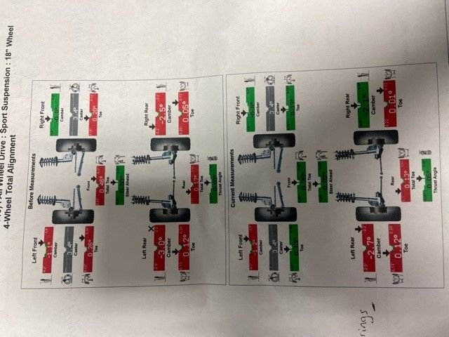 Hello all, I own a 2014 Countryman JCW edition and am having trouble getting the rear end aligned I took it to my mechanic to get it aligned. After the first attempt, I was informed that they could not get the rear end aligned and that replacing the rear springs would more than likely bring it back into spec. Fast forward a couple weeks after replacing the rear springs, I took it to get aligned again and the spring replacement provided very little change. He said that he did everything he could in terms of adjustments but could not get it to fall within spec. What could be causing the car to stay out of alignment? I am having an issue with the tires wearing unevenly especially on the last section of tread on the inner portion of tire near the sidewall. I owned a 2012 R60 S that I purchased from new and seem to remember it always being hard on the rear tires even from new. Is the countryman just hard on tires and runs aggressive camber? Any help with this would be greatly appreciated. Attached are the photos of the 1st alignment and the 2nd. (Sorry for them being sideways, I rotated them but they will not stay oriented correctly).