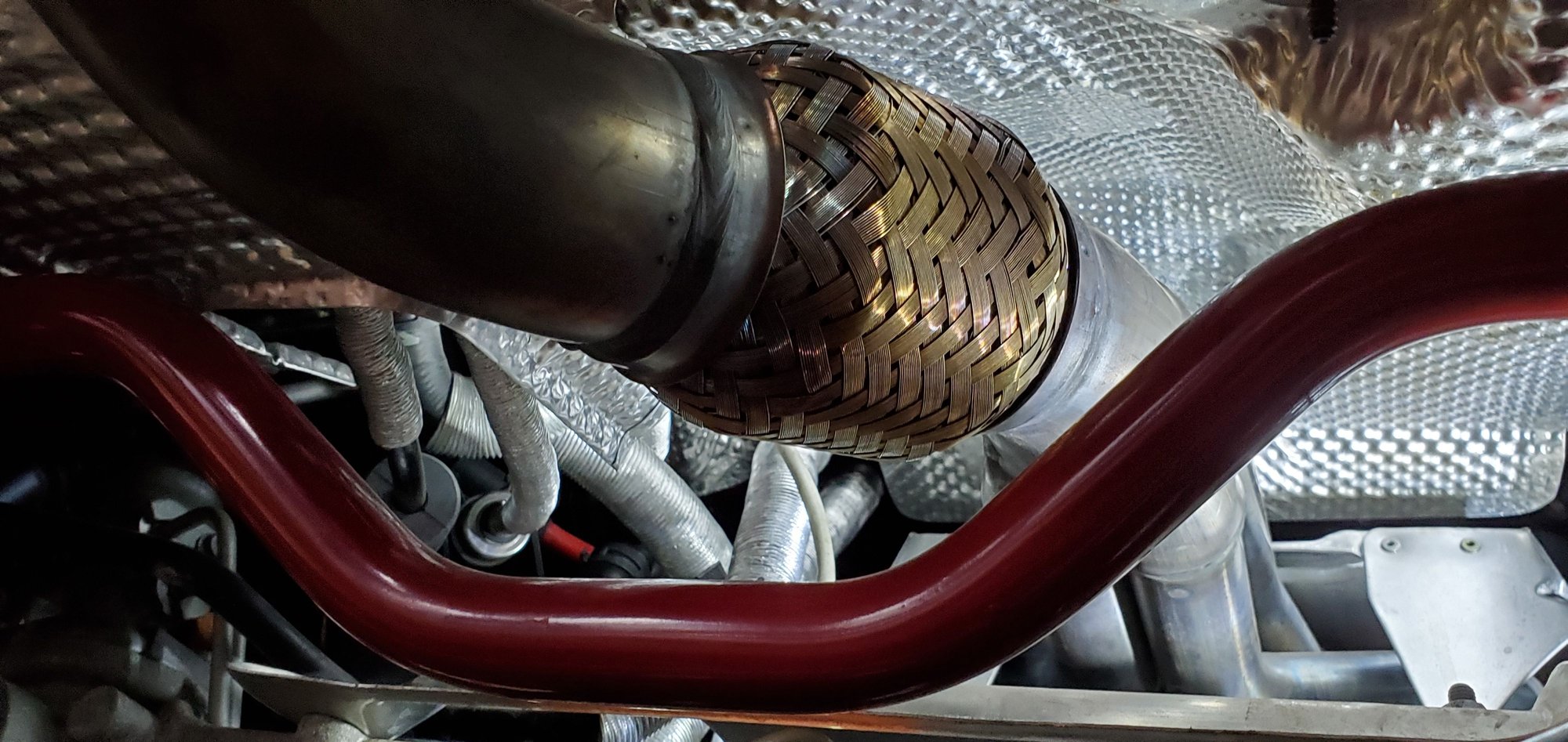 I'll be monitoring responses but one question is whether you intend to retain usage of OEM (or aftermarket) resonator? Unsure of brand of headers and hi-flow cat on mine installed as part of 2006 performance mods, however as described and shown in my (sig) topic, that combo puts the cat flange at such a position which provides inadequate clearance at the res can leading edge to bottom of tunnel and adjacent shifter box. When outside and garage temps warm up later this week, I'll be switching back to Milltek non-res pipe to avoid direct contact with resulting resonant frequency transmission into the cab. Point being, you'd likely avoid that possible issue with an OEM header/cat...