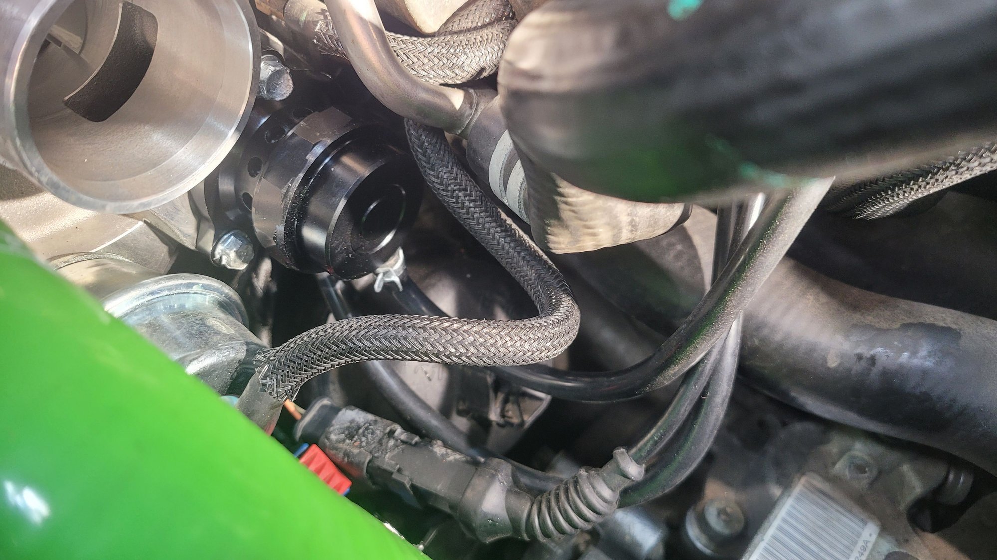 I also cleaned up the throttlebody before reinstall, I used copper gasket spray on both sides of those teflon gasket things and i also heatsoaked the manifold and retorqued the nuts 3x times ( I'm **** about vacuum hoses). I really put in effort and took my time to route vacuum lines not just the cleanest way but also in a way so I can easily fix any vacation leaks tgat might occur, though I took extra care to use zipties and hose clamps ON EVERY SINGLE vacuum source , even the stock soft lines that are just pressed on like on the fpr , I used strong zip ties to better hold on all those type lines.