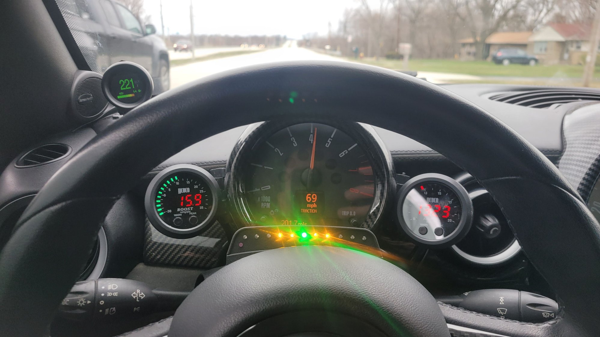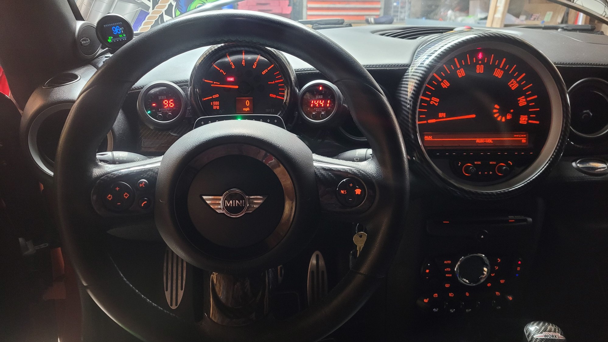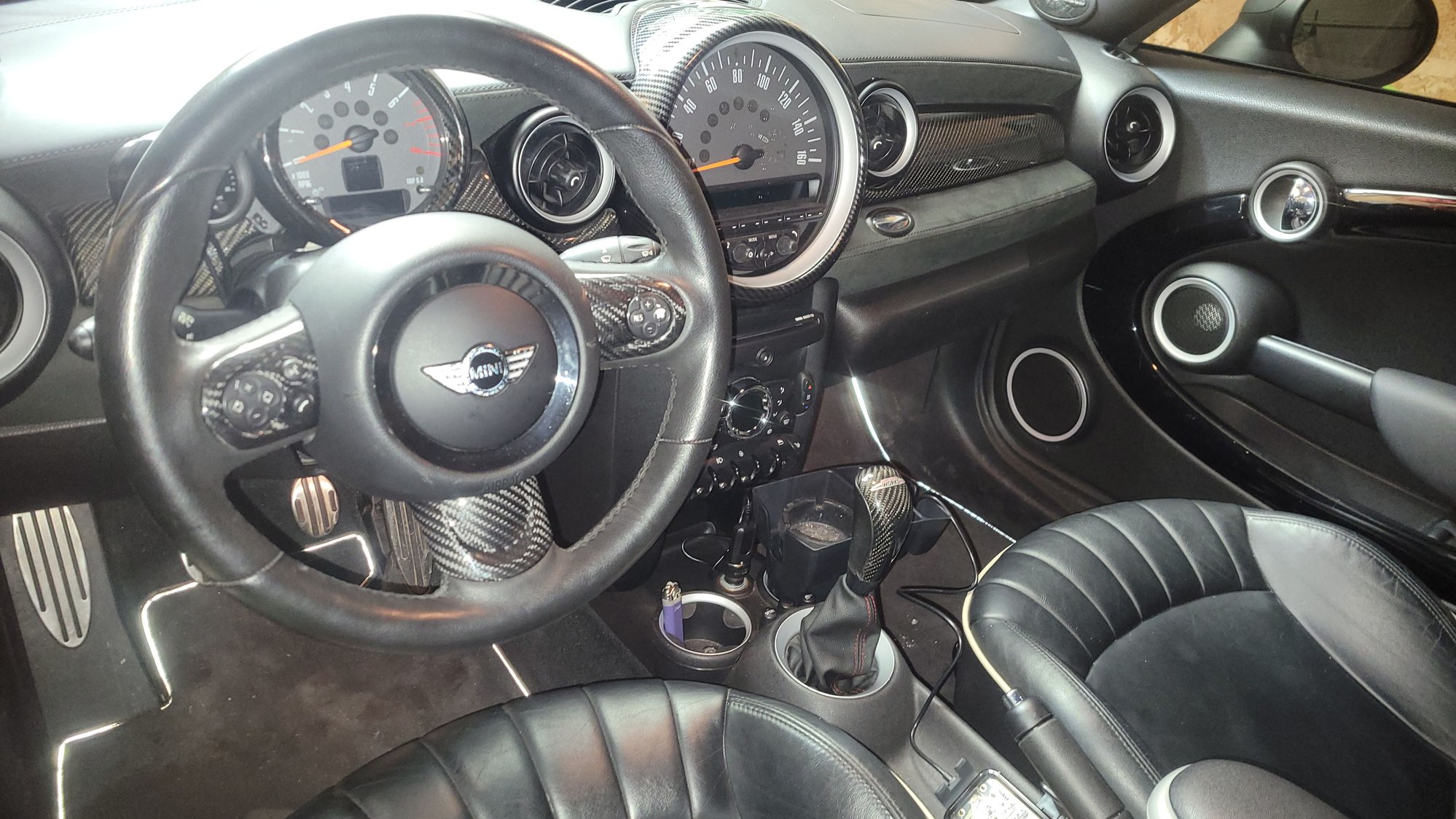 I also ordered a bunch of carbonfiber overlays for interior trim pieces to better tie in the carbonfiber dash and shifter.. id REALLY like to sell the jcw steering wheel out if this car along with the r56 jcw shiftlight id literally just ordered BECAUSE i wanna drop the coin and get one of those custom led/shiftlight/data displaying carbonfiber/Alcantara flat bottom steering wheel. I also ordered a few more goodies for the outside too.