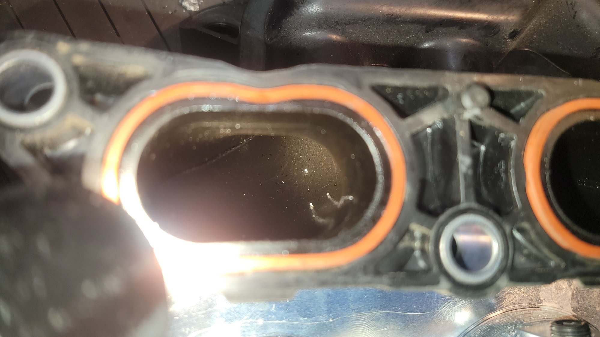 it probably a REALLY good thing I replaced my manifold too because as you see , the pic of the stock on on the inside of the throttlebody inlet , IT HAS A BIG INTERNAL CRACK !!! HOW ??!!?? IS that possible ??? So i guess these aluminum /billet /sheet metal intake all add more than just performance but also help reliability then too. Which imo it absolutely does exp with how it runs its vacuum setup.