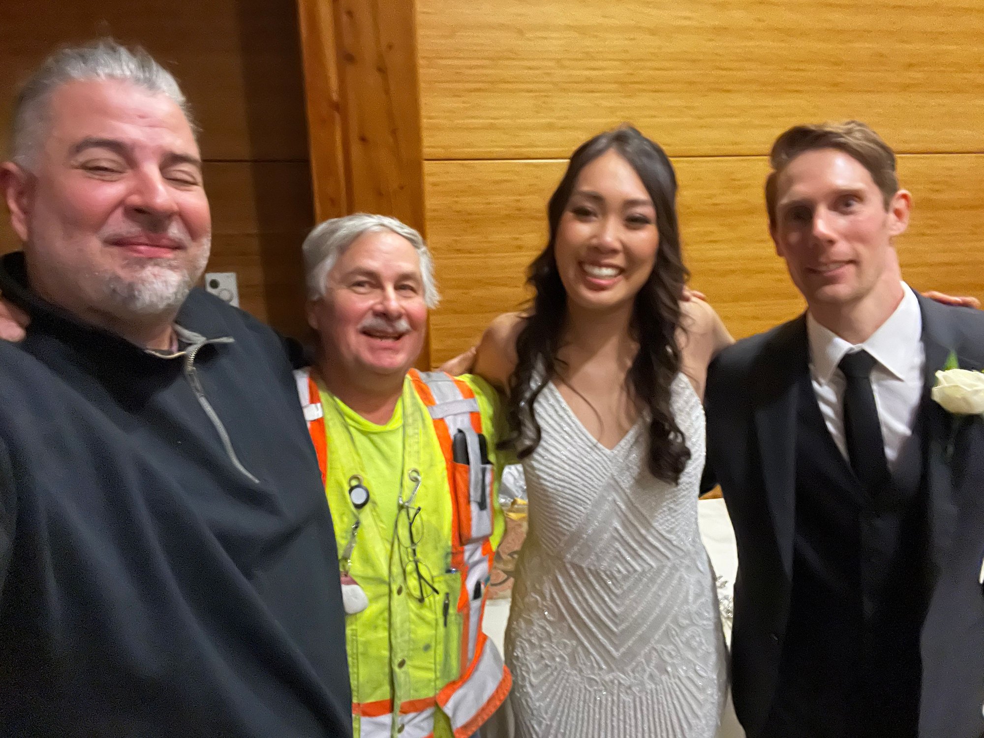 Upside! The Cops (RCMP) were super nice and the Firefighters, they were funny. The Paramedics were weird ask 1 question and then just took off and one of the truck drivers that stopped to help gave me a ride to Calgary, So, we invited him to the Wedding Reception. From here on out we all considered him my Knight in Hi-Vis Armor. I arrived in Calgary smelling like smoke and starving, but safe and sound. We also took him out to dinner the week after.