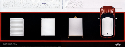 [Blank Pages with MINI Ad (Red)]. Metropolis. March 2006. (pages 20 & 21)
