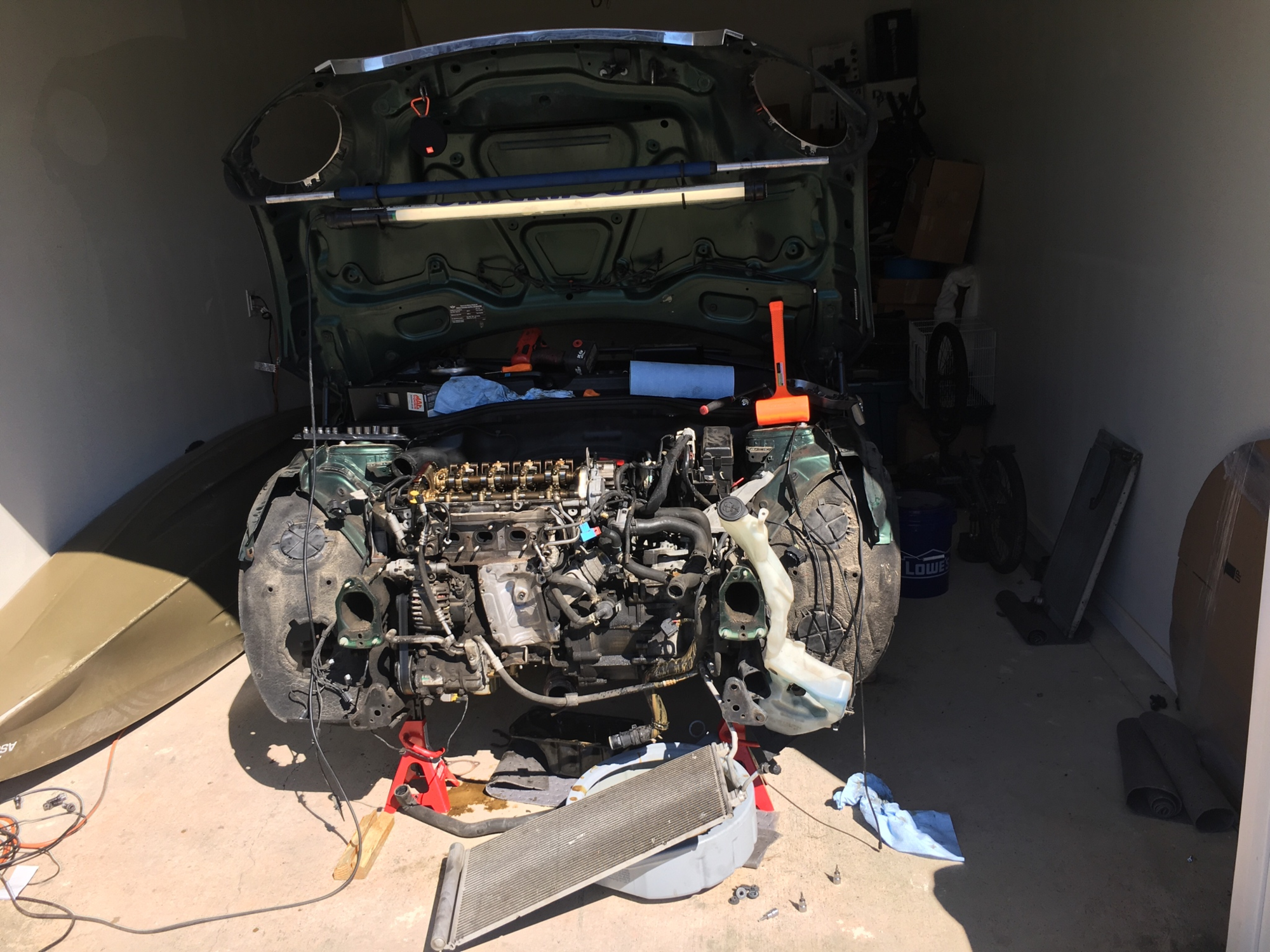 I very quickly realized that the front of the car had to come apart in order to get the engine out