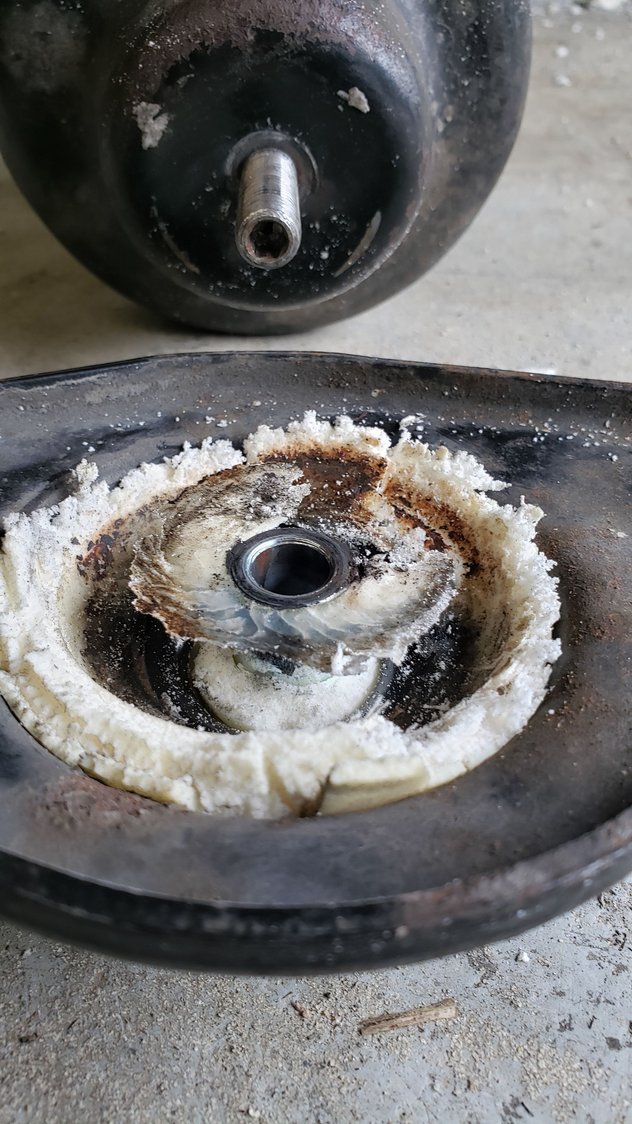Struts and cv axle came in so I installed them. The drivers side strut was bent too but not as bad. What was more surprising was the fact it also bent my IE fixed camber plates. They are 3/16" steel plates sandwiched between the strut and strut tower. I guess the impact was harder than I thought lol. I flatened the camber plates back out on my press and put them back in with the new B4's. I also changed the gear oil in the trans when I swapped the cv axle and did an engine oil and filter change while I had it in the air. I still need to flatten my skid plate back out and replace the fuel filter but thats a job for another day....