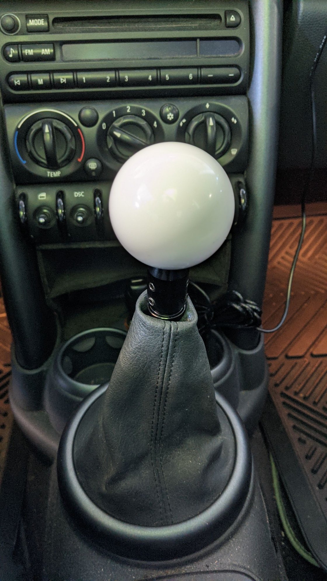 My little brother inspired me to put a better shift **** in the MINI. I bought an acrylic "Q ball" **** awhile back. Just got an adapter since MINIs use some kind of stupid snap on thing. If I like it I may either get a short shifter with the correct threads on the end or go my brothers route and cut the top of the factory shift lever and thread the top. I'm not really digging the adapter but I love the ****. I should have put it in today but injured my back last week and I've been trying to take it easy to give it a chance to heal. Maybe tomorrow I can pop it in.