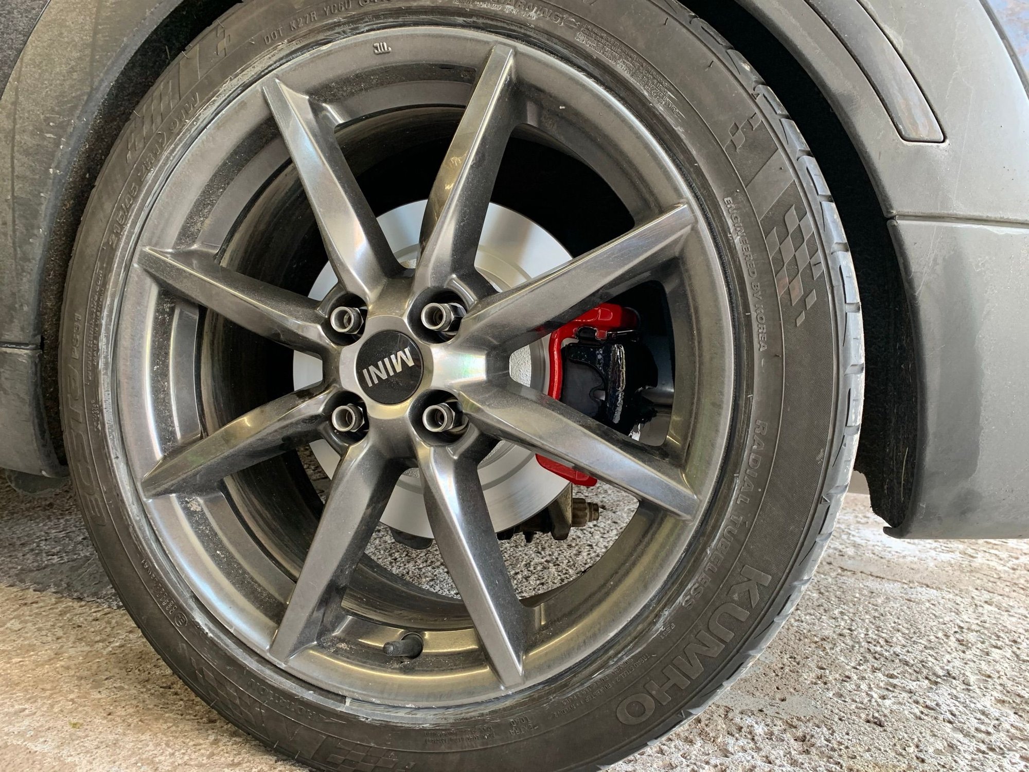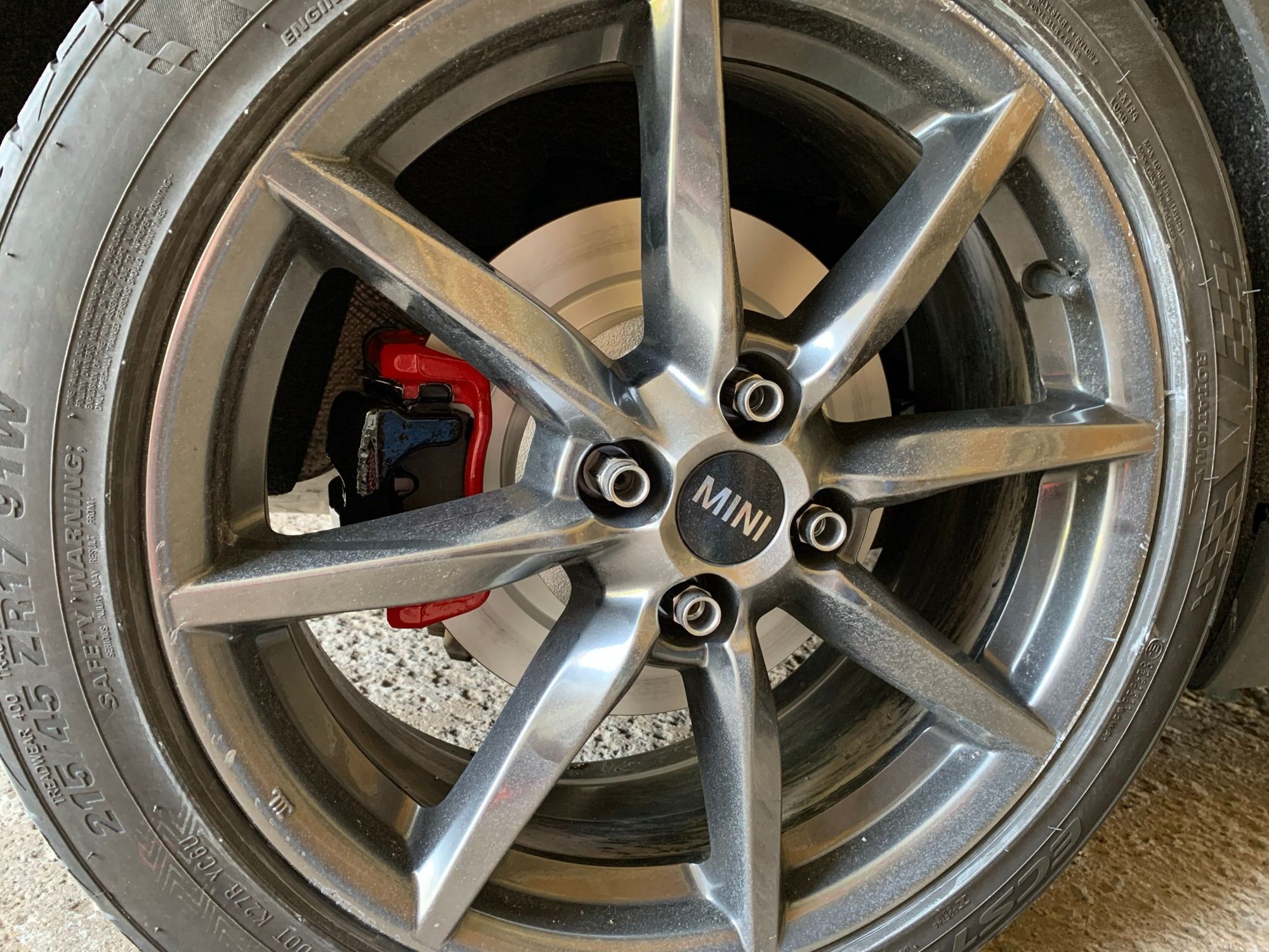 Brakes needed doing, so I took this as an opportunity to upgrade to the rear JCW brackets and rotors. JCW rotors are 280mm, vs the S rotors coming in at 259mm. Nice thing about the JCW rear upgrade is the stock S calipers bolt right up.