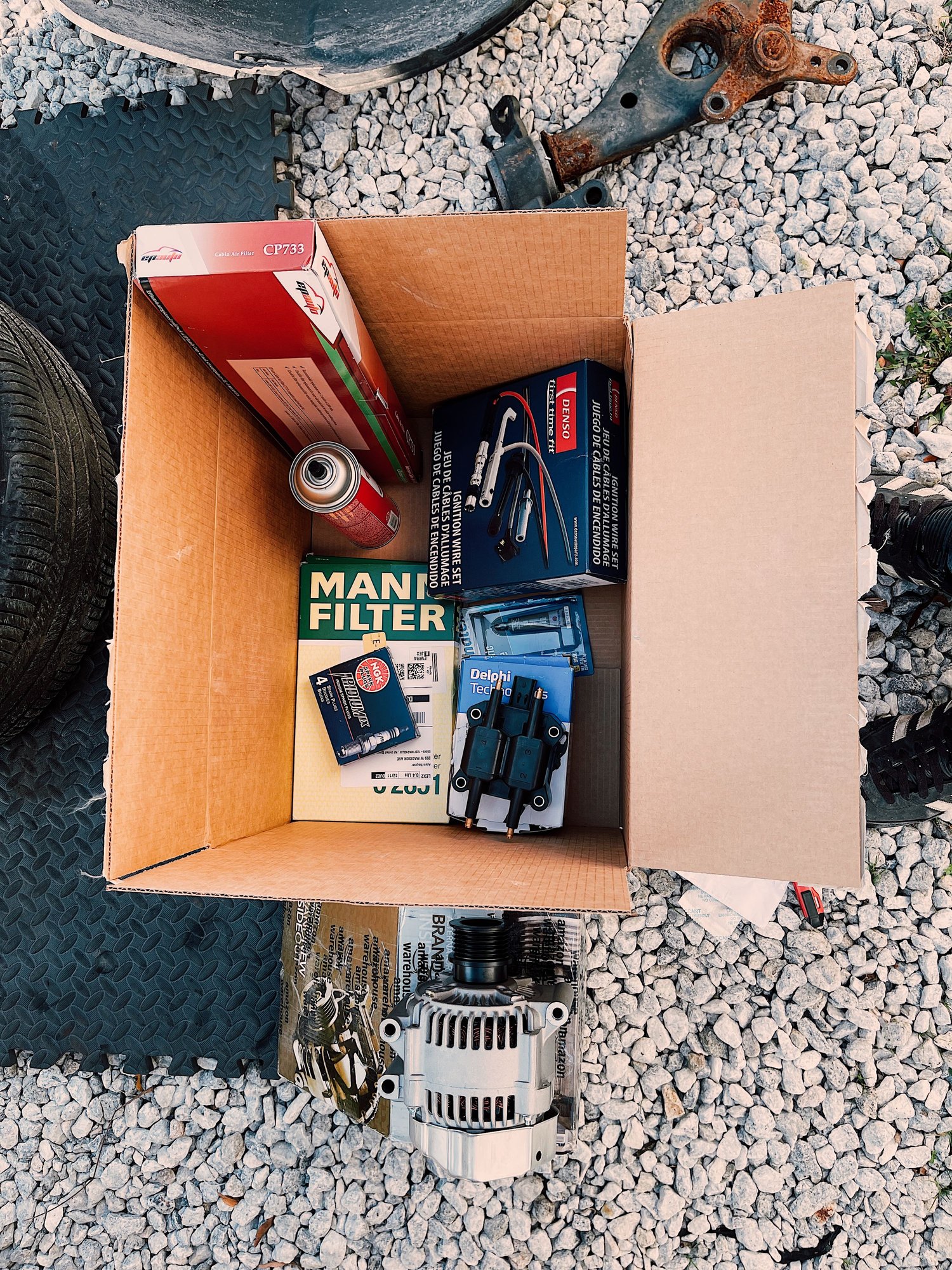 I had air filters, alternator, idler pulley, crankshaft damper and a new coil pack and plug wires “in stock”
