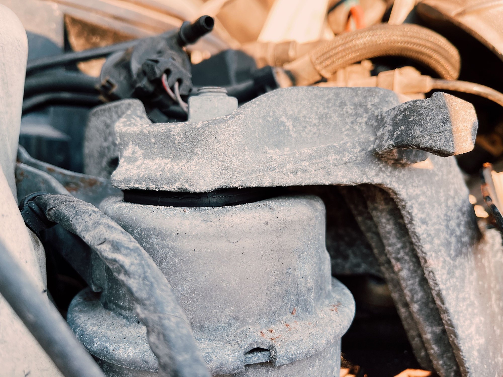 Hard to see but I have some coolant dripping from the oil pan. Of course I thought expansion tank right away, but the tank looked fine with no signs of leak.. I didn’t have the daylight to find the source today, but I’m hoping it’s a thermostat housing issue and not a head gasket.
