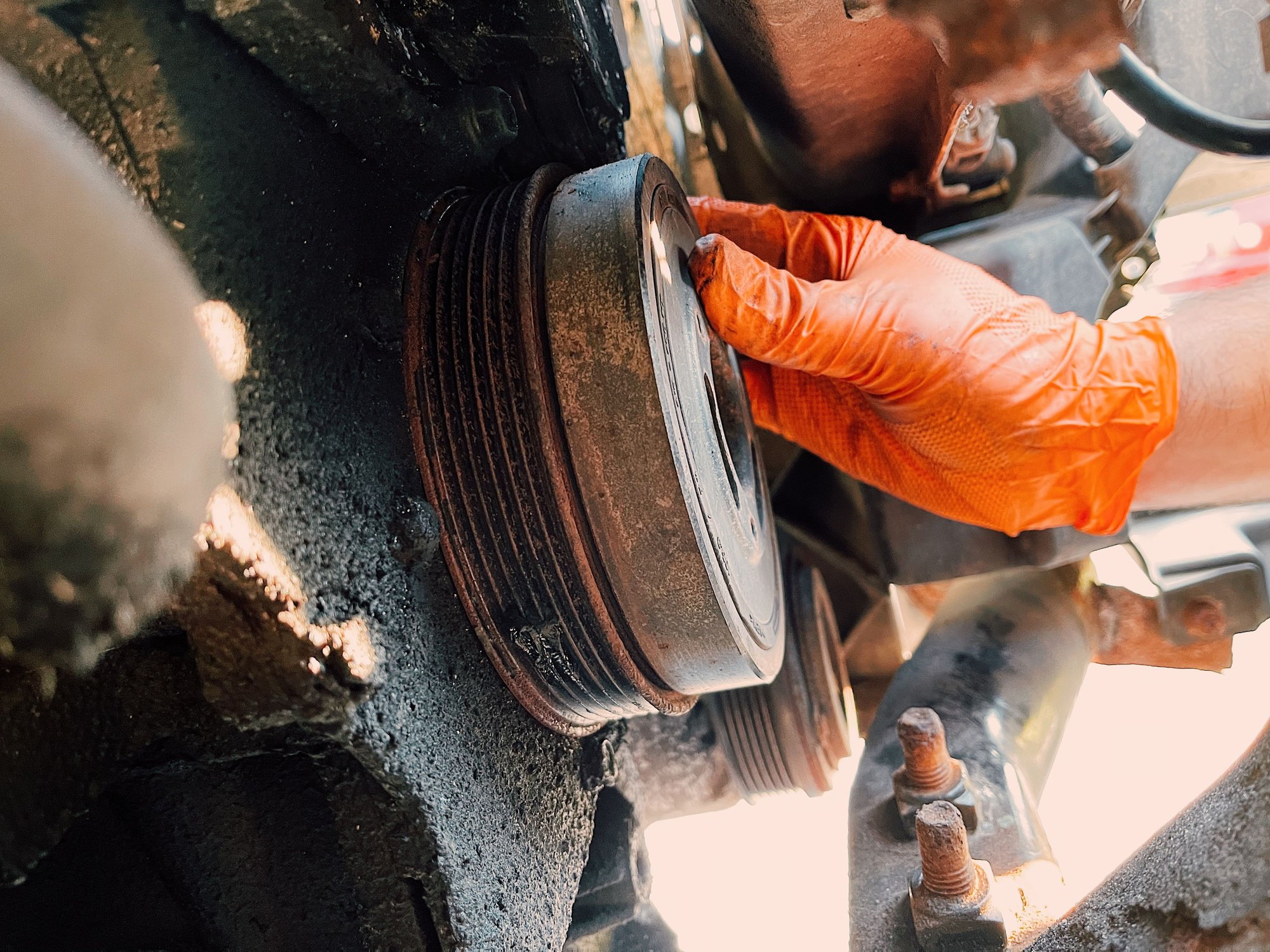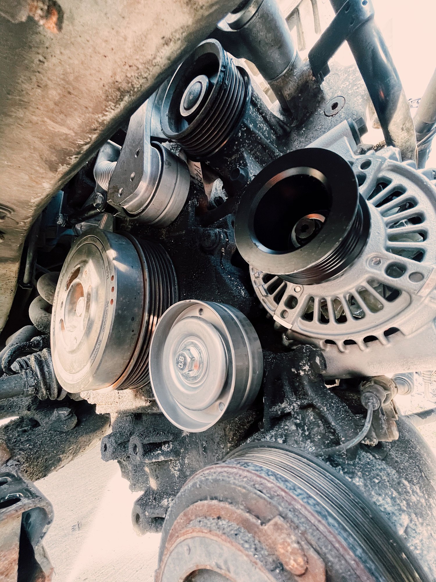 It didn’t seem outlandish to think whoever ran it to the point of the crank pulley exploding probably didn’t know what happened and drove it home with no water pump, no alternator, killing the battery, overheating and whatever else.. A blown head gasket was a very real possibility in my mind, but so far, no signs of that.
