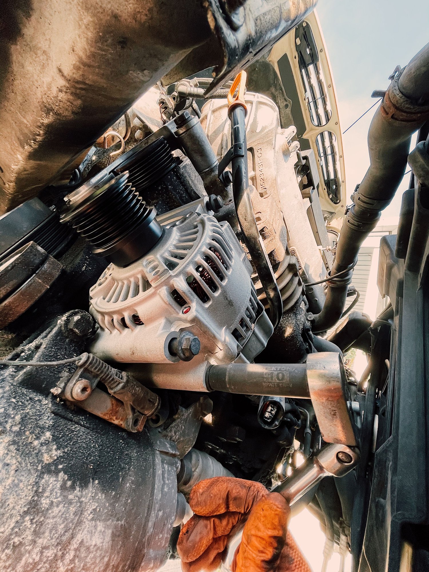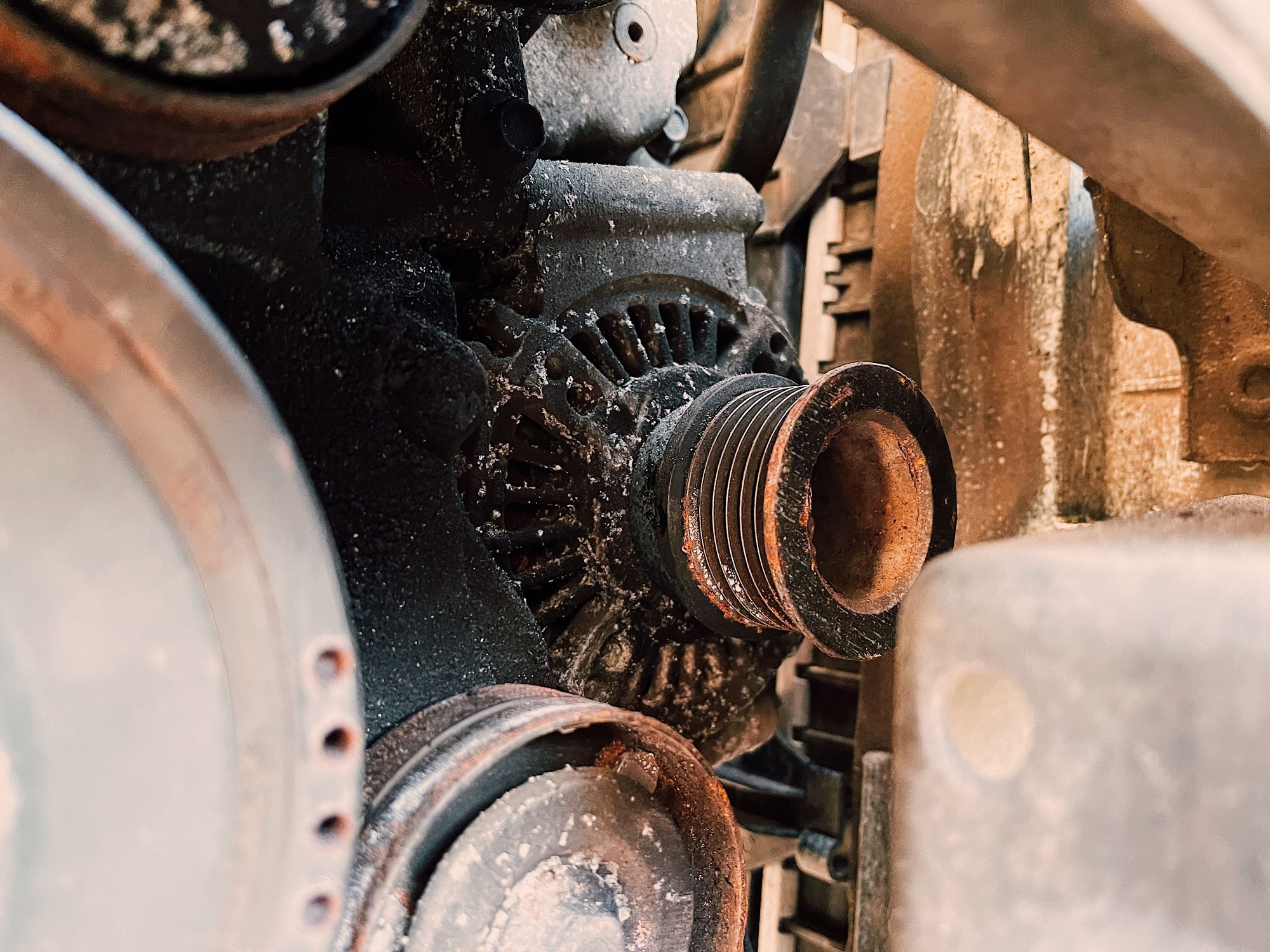 The alternator was also completely seized. I couldn’t turn it at all by hand and I had a really good grip on it. I actually have a spare brand new alternator on the shelf, so I’ll also swap that over tomorrow.