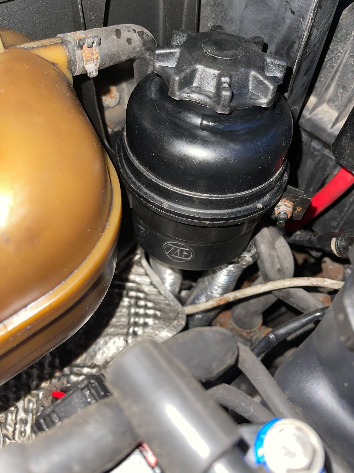 Bleeding the new power steering system. Feels like new.