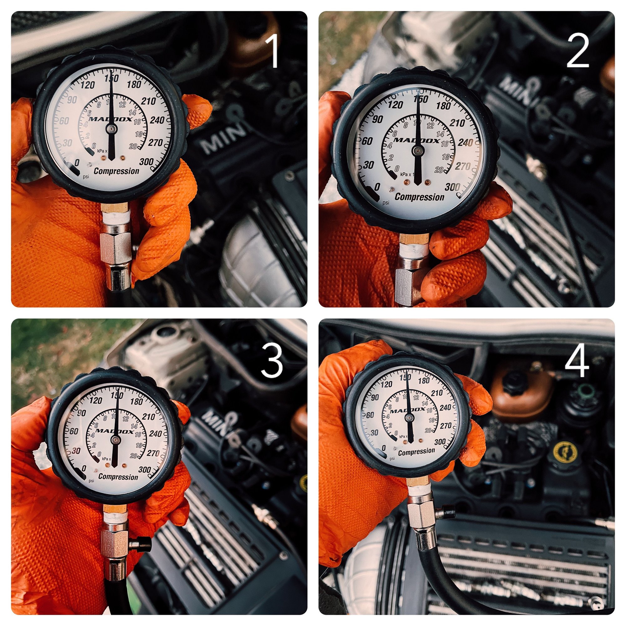 Today I found some time to test the cylinder compression on the track build. Honestly I was expecting the worst with the other signs of neglect in the belt line I already fixed.